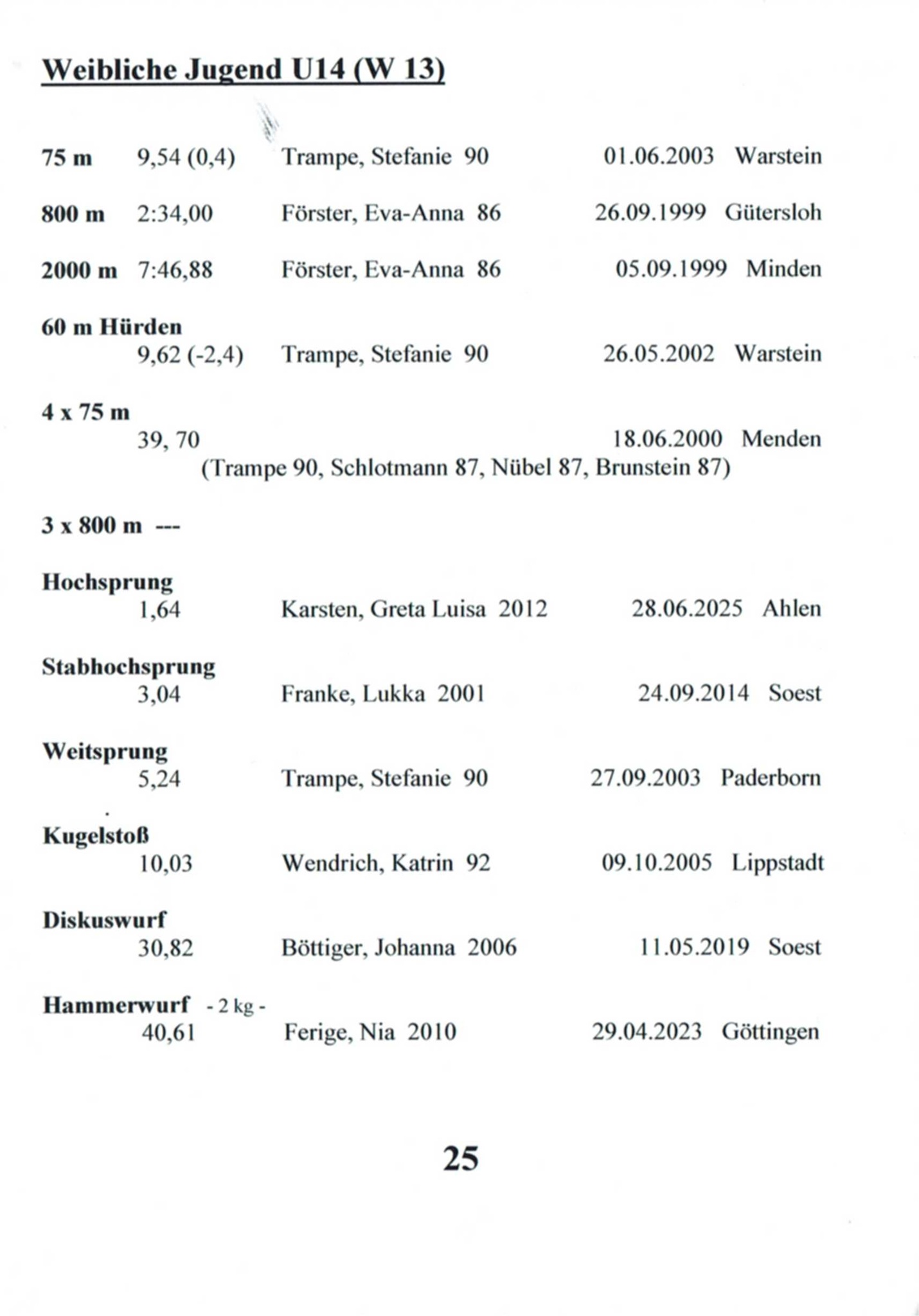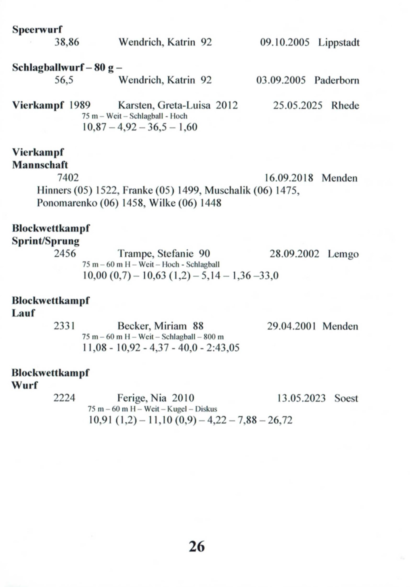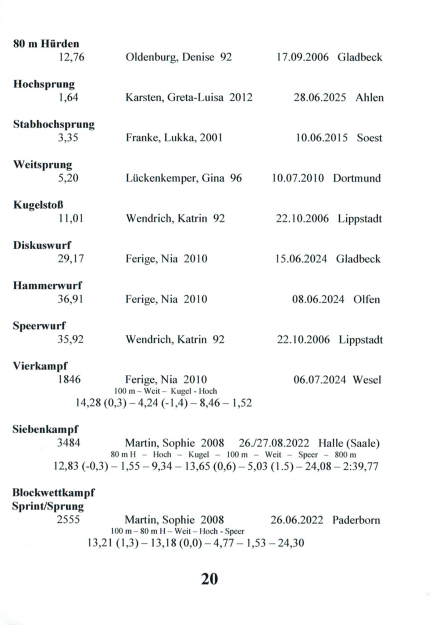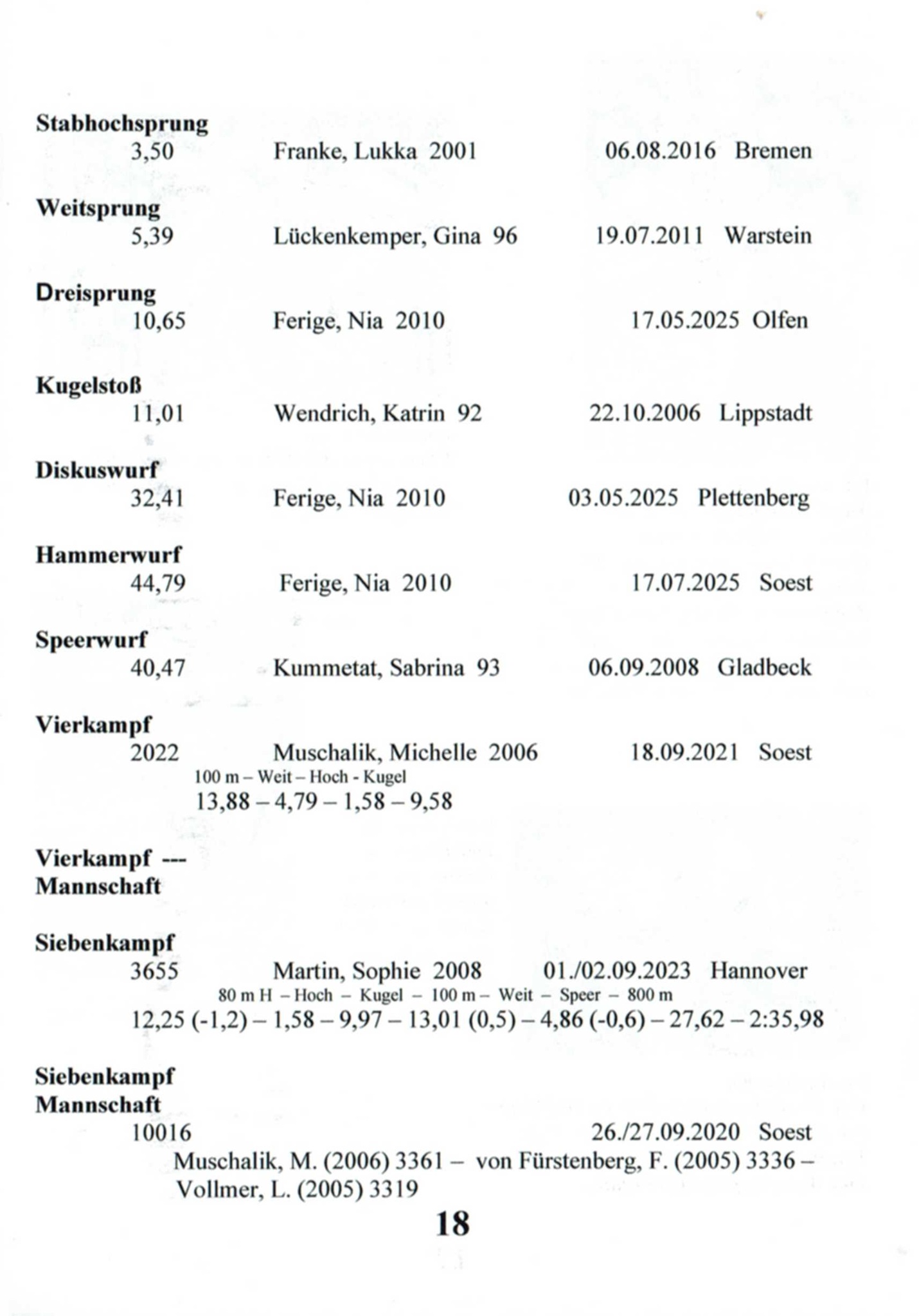 11x Landesmeisterin Westfalen in 6 Disziplinen