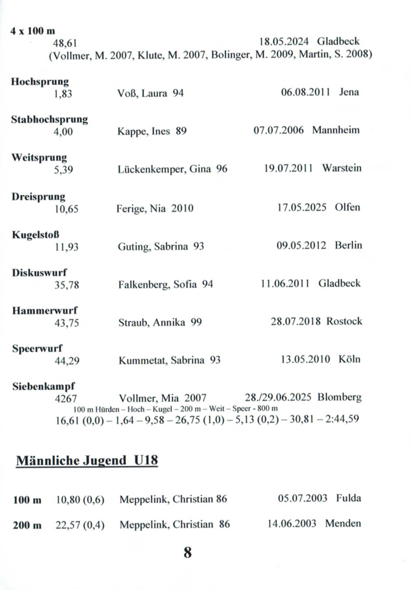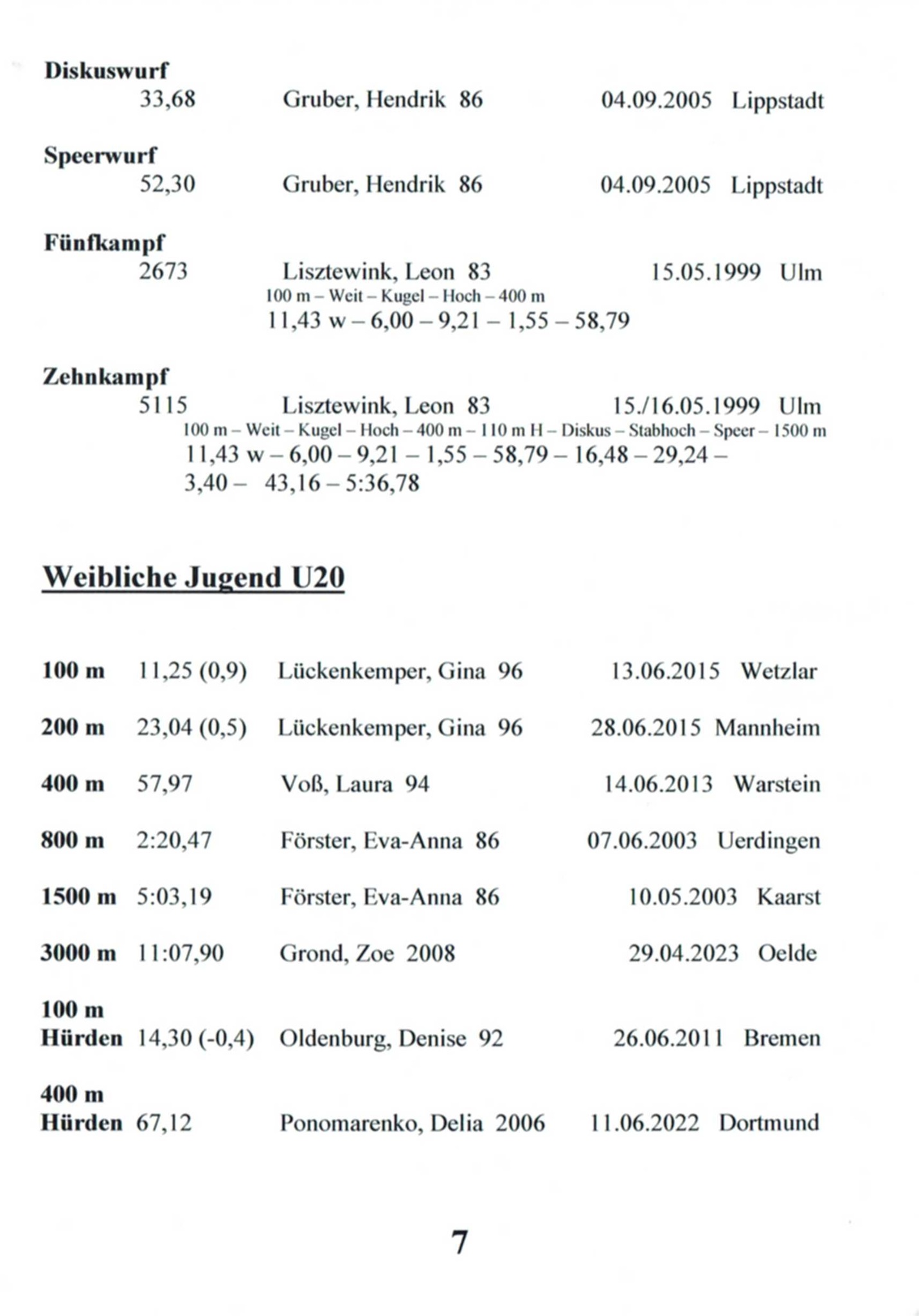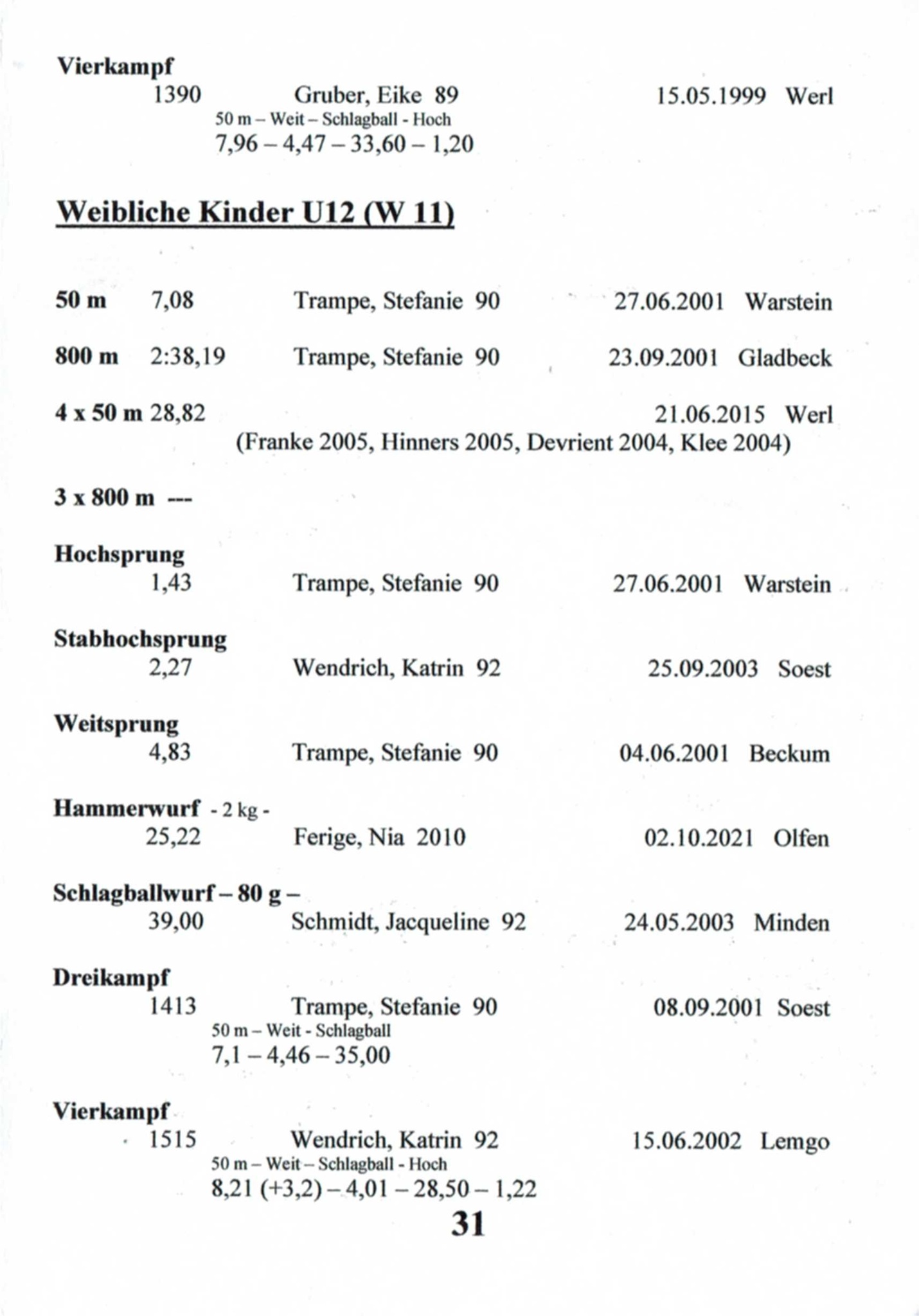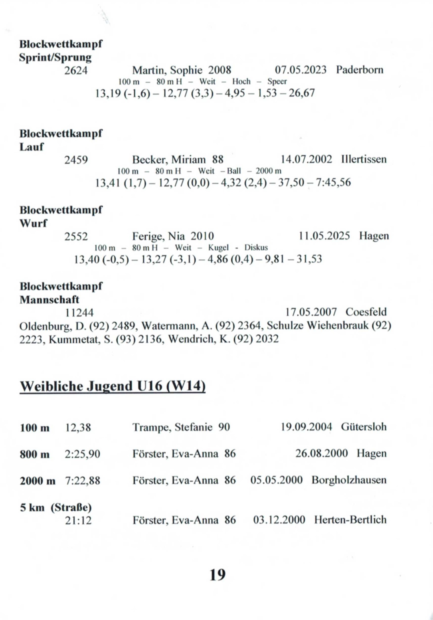 11x Landesmeisterin Westfalen in 6 Disziplinen