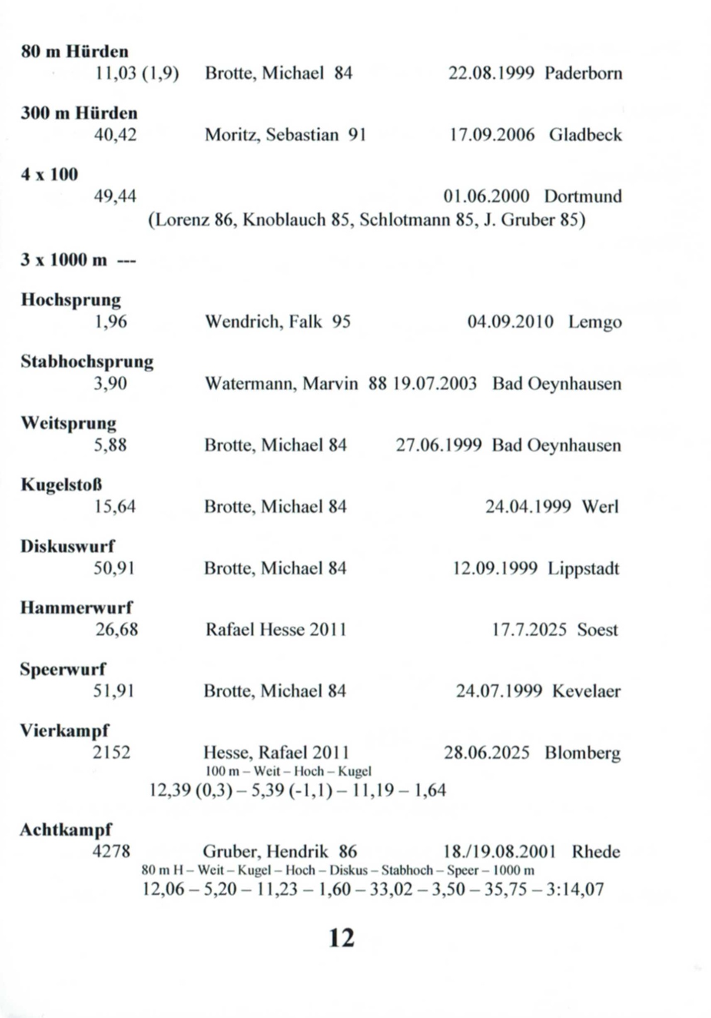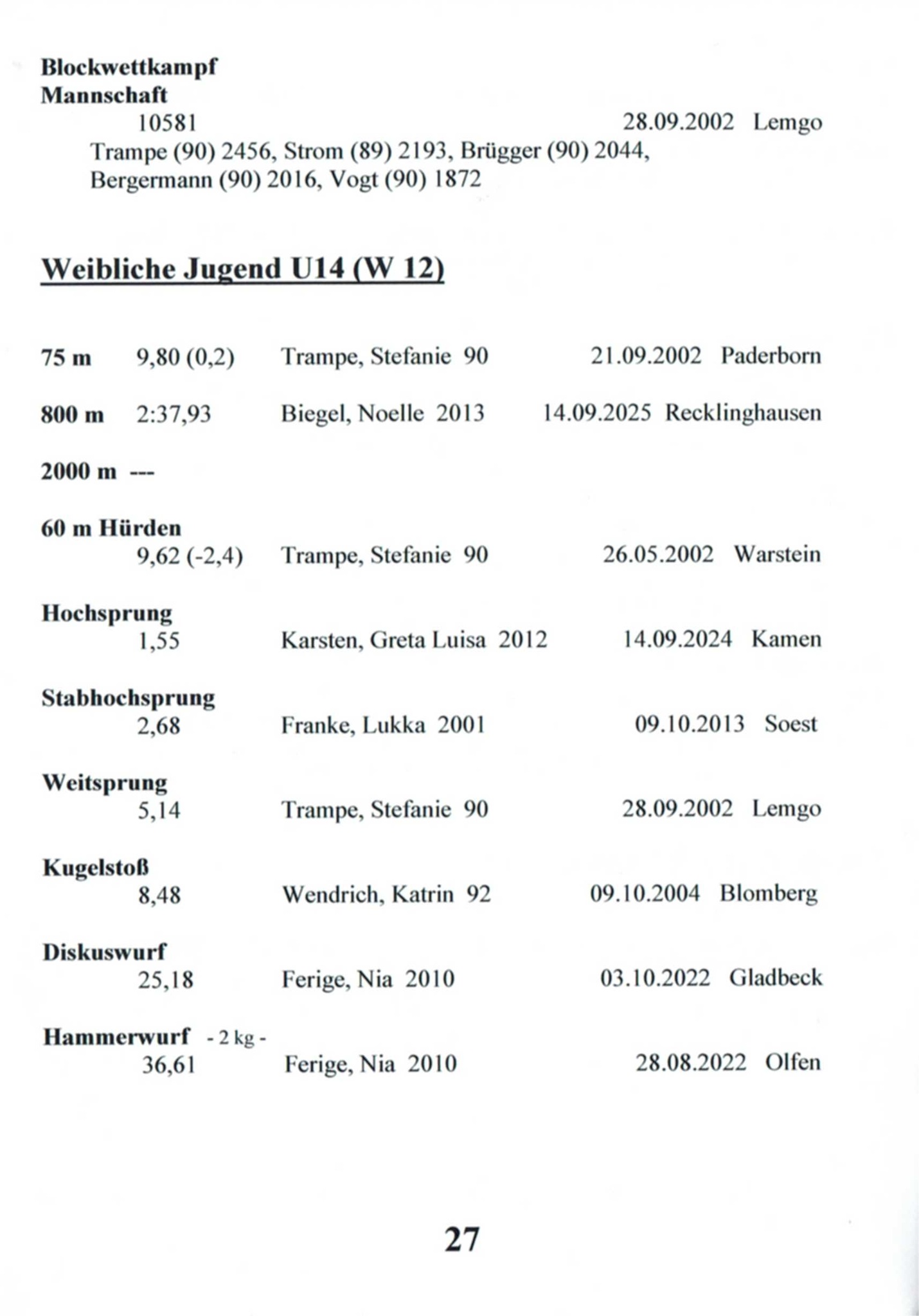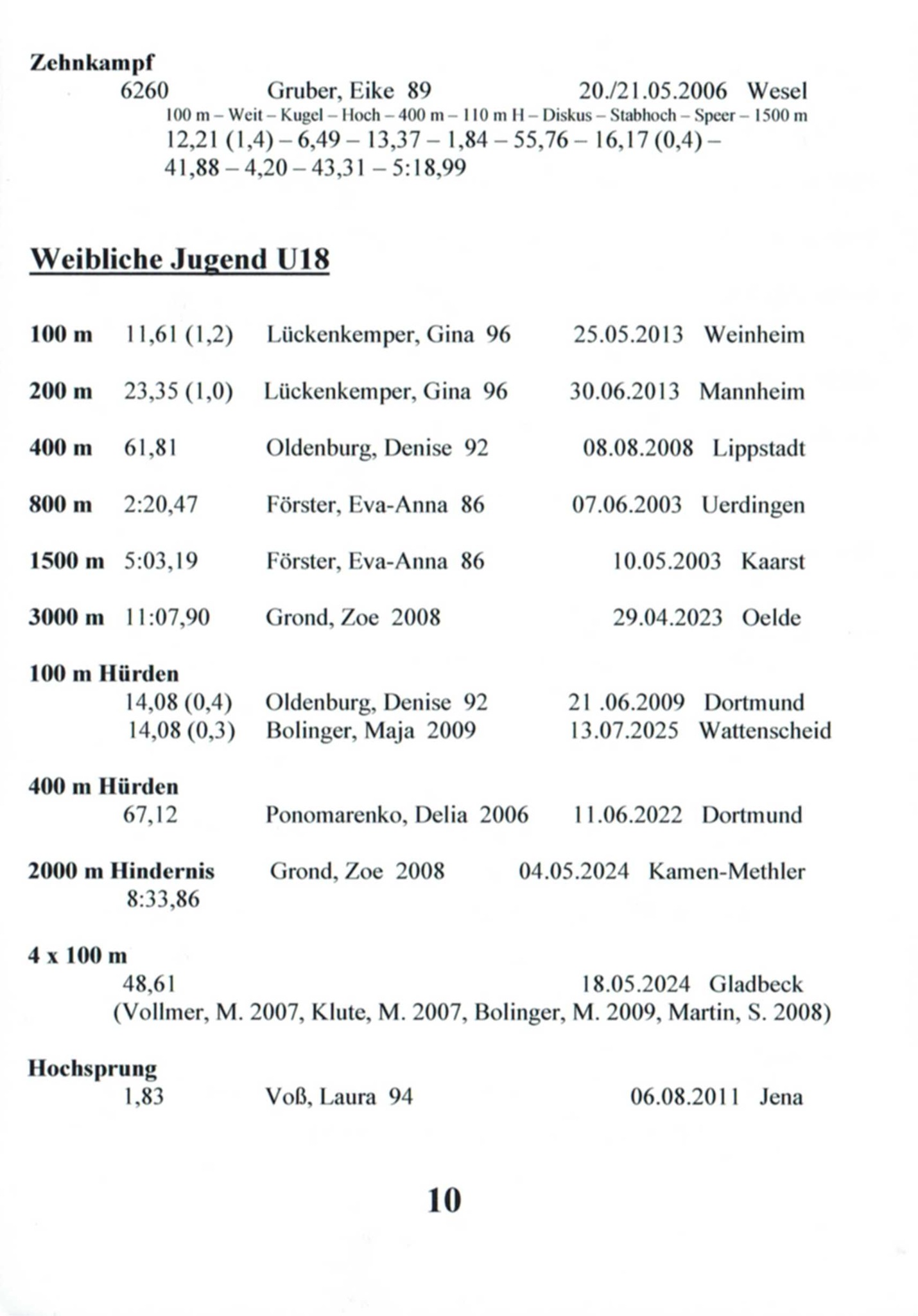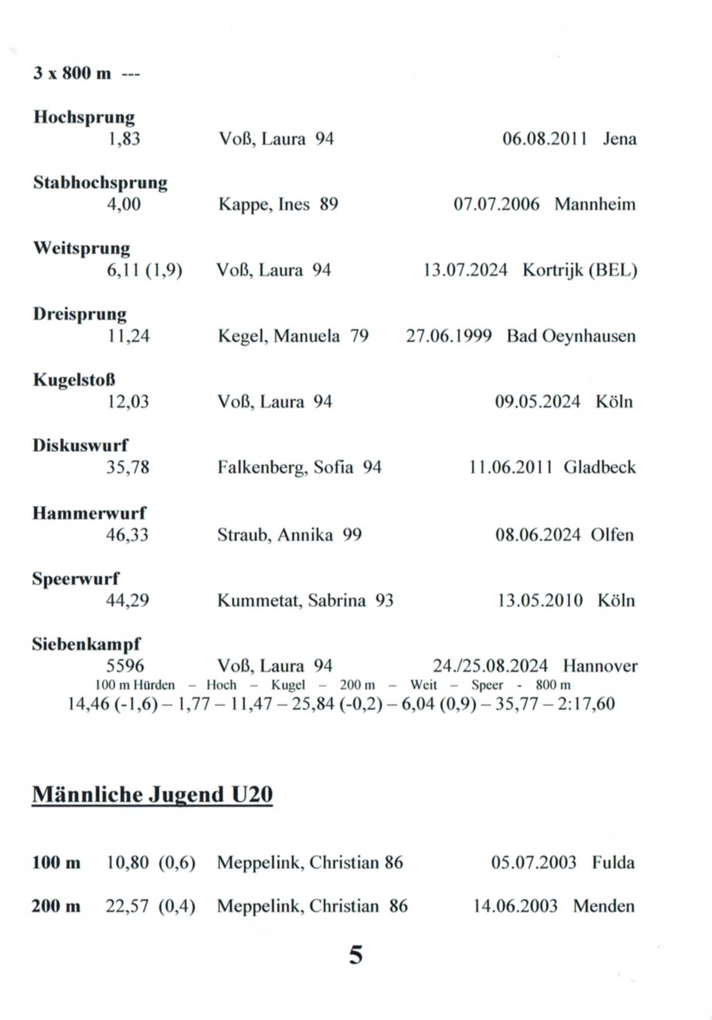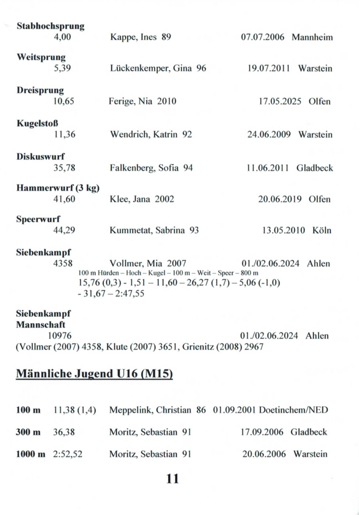 11x Landesmeisterin Westfalen in 6 Disziplinen