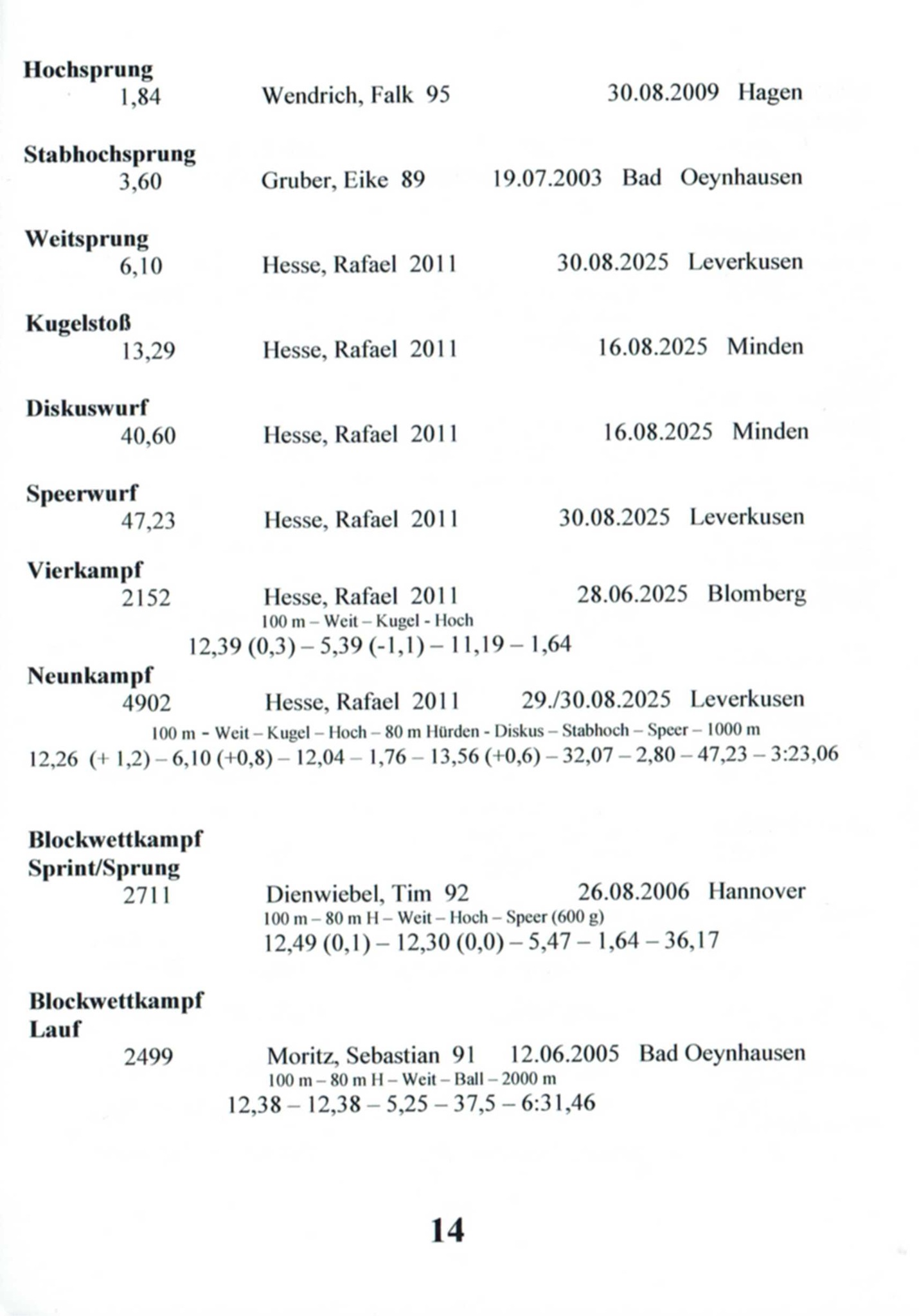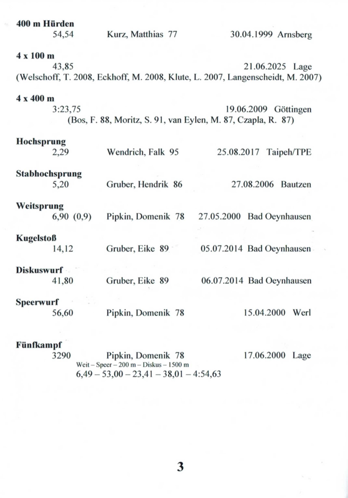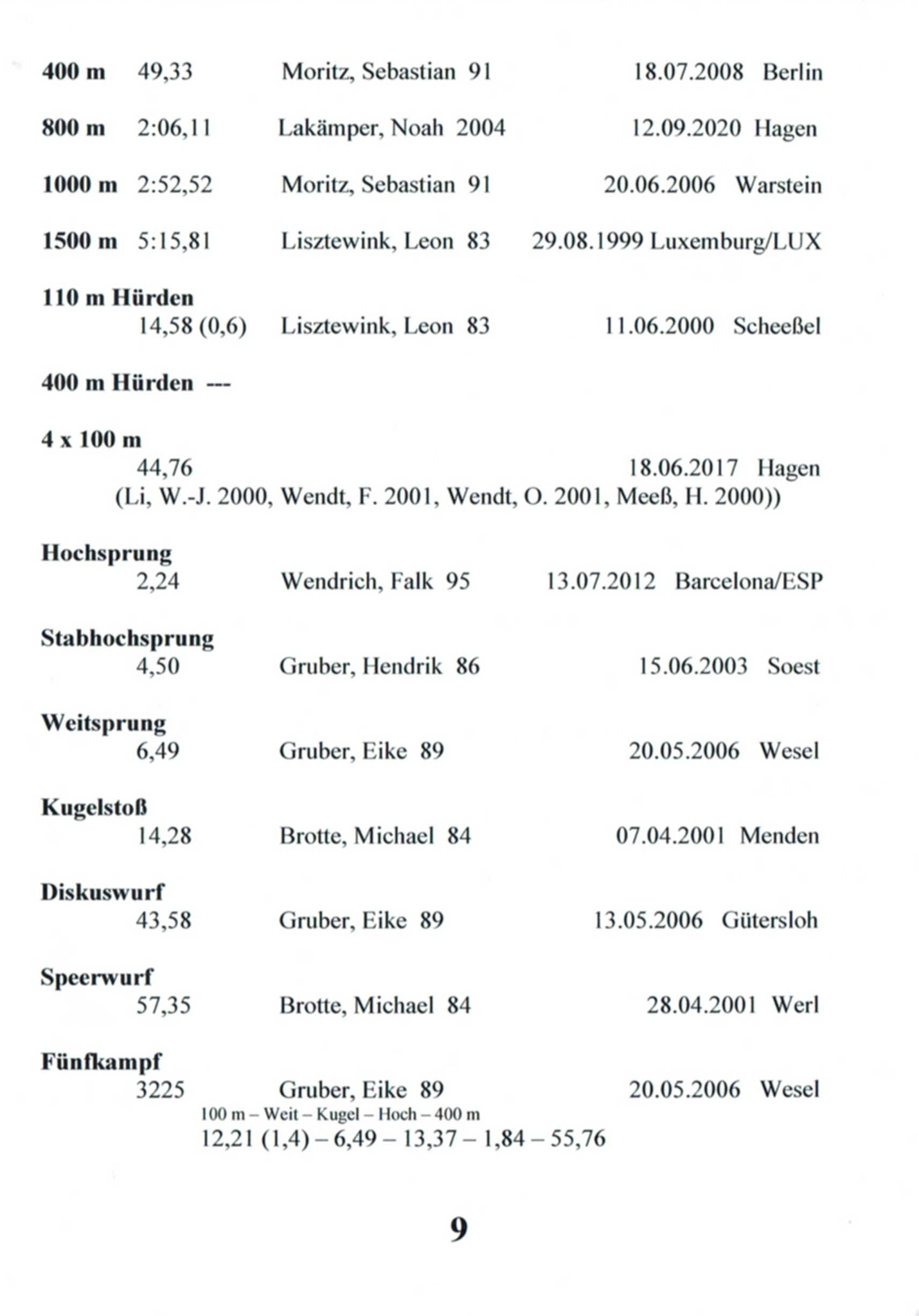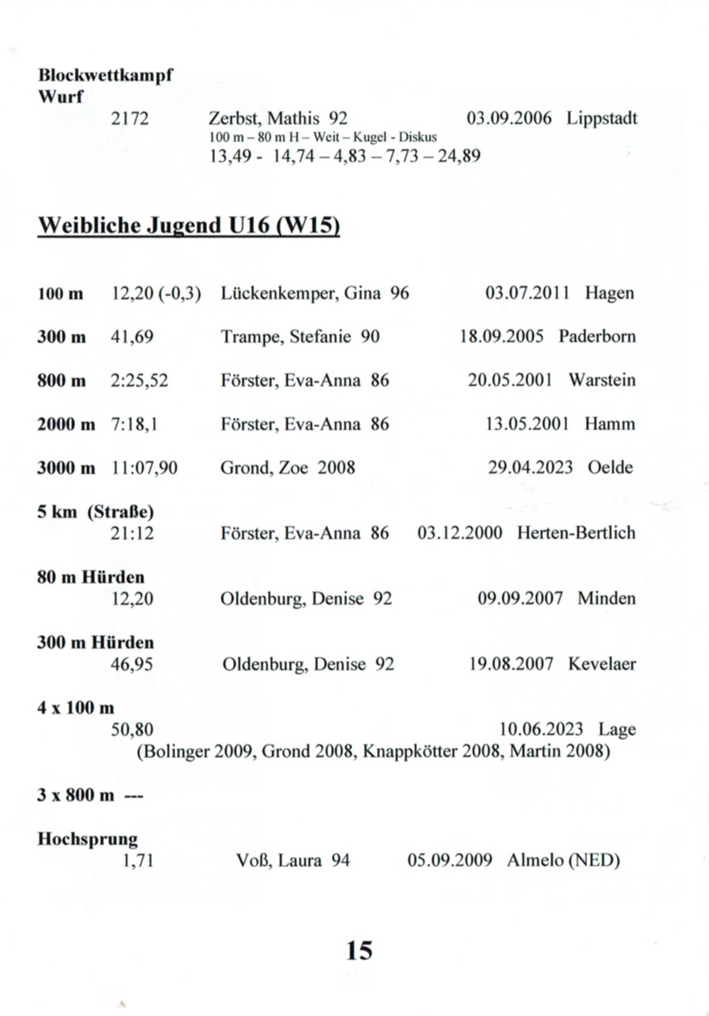 11x Landesmeisterin Westfalen in 6 Disziplinen