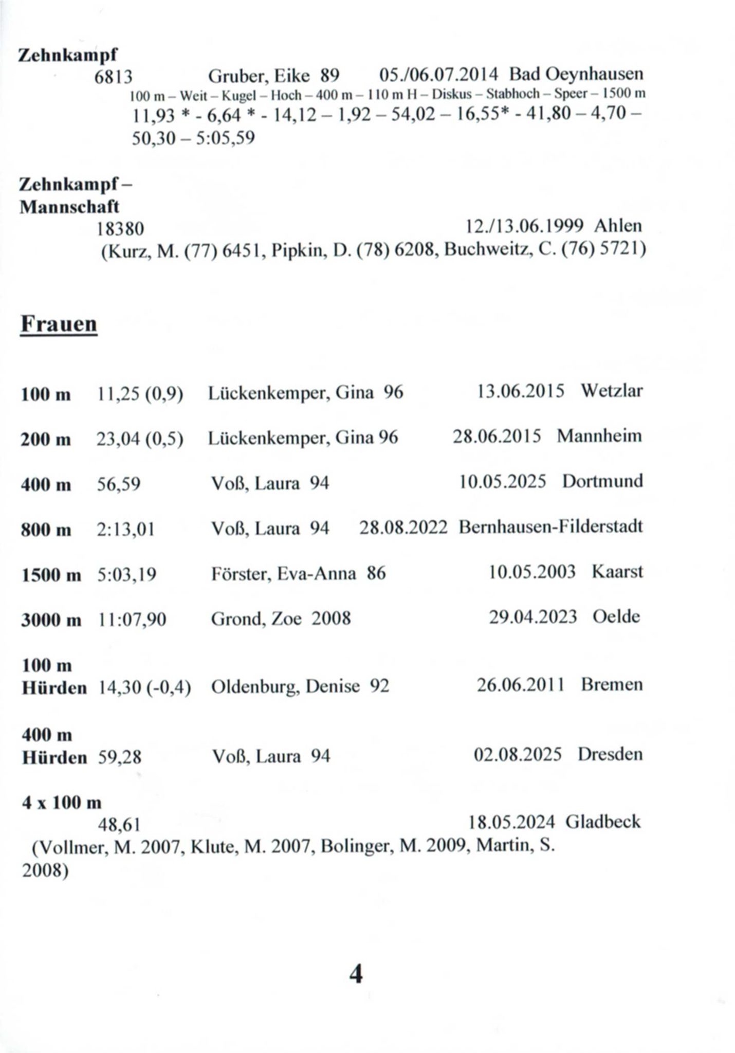 11x Landesmeisterin Westfalen in 6 Disziplinen